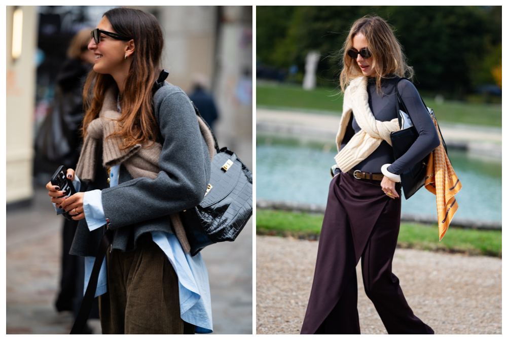 如今,毛衣的功能早已不限于穿着,更可化身为一件别致的配饰。将一件柔软的毛衣随意地当作“背包”斜挎在身上,这种打破常规的穿法,不仅可以在办公室随意调整造型,更能瞬间打破传统通勤装的单调,是一种看似“不和谐”的叠穿方式。