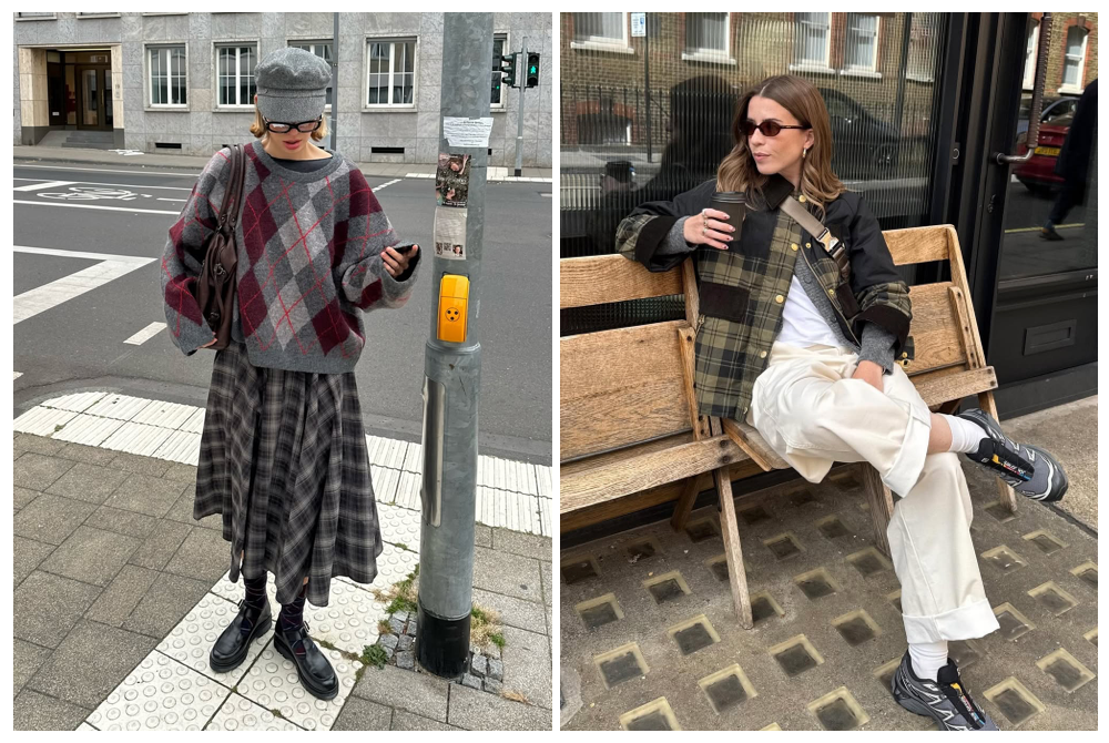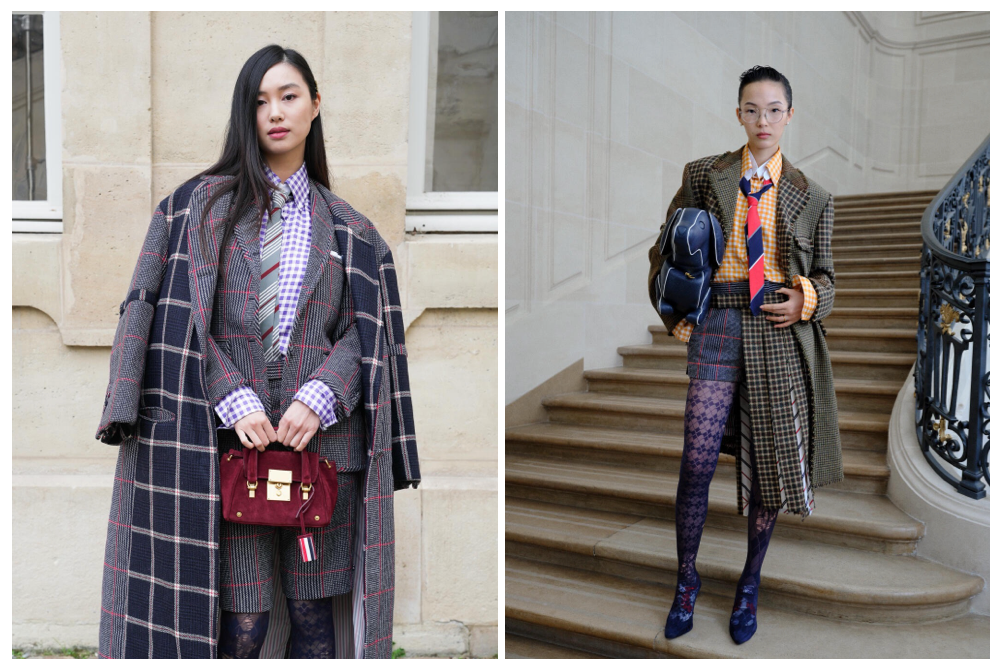 格纹叠加格纹,并非会特别混乱。可以尝试将大面积格纹与细小格纹进行组合,或是选择本身就采用拼贴设计格纹的单品,若担心视觉冲击力过强,可以用一件干净的白色内搭或下装作为“画布”,便能有效中和整体造型。