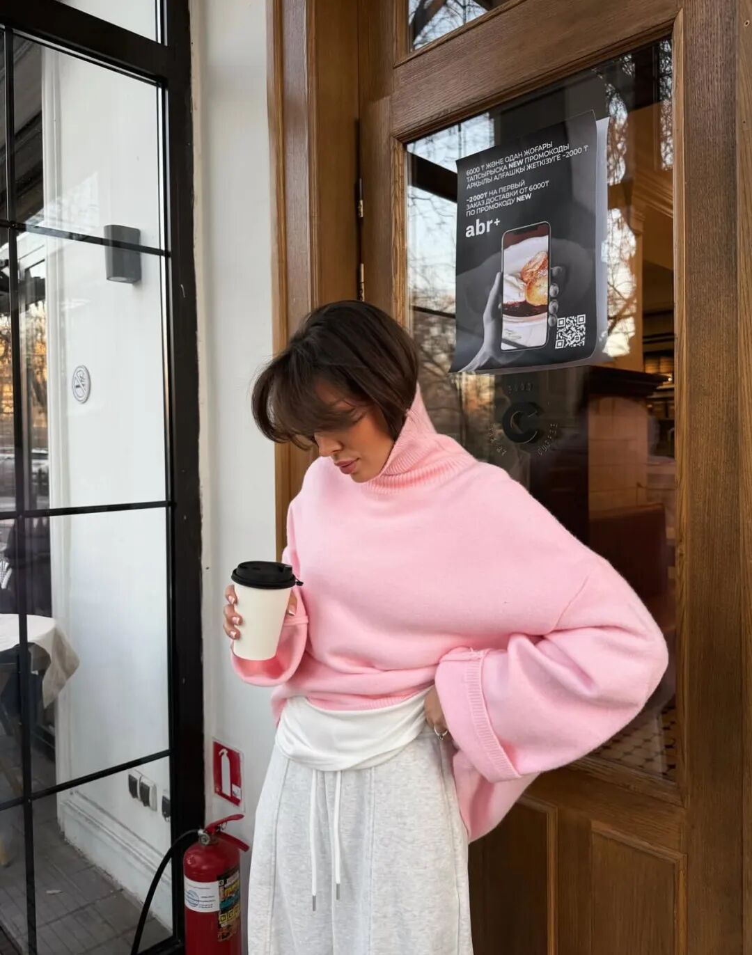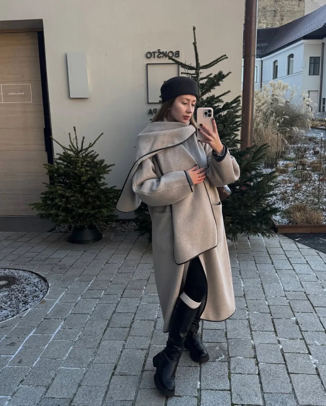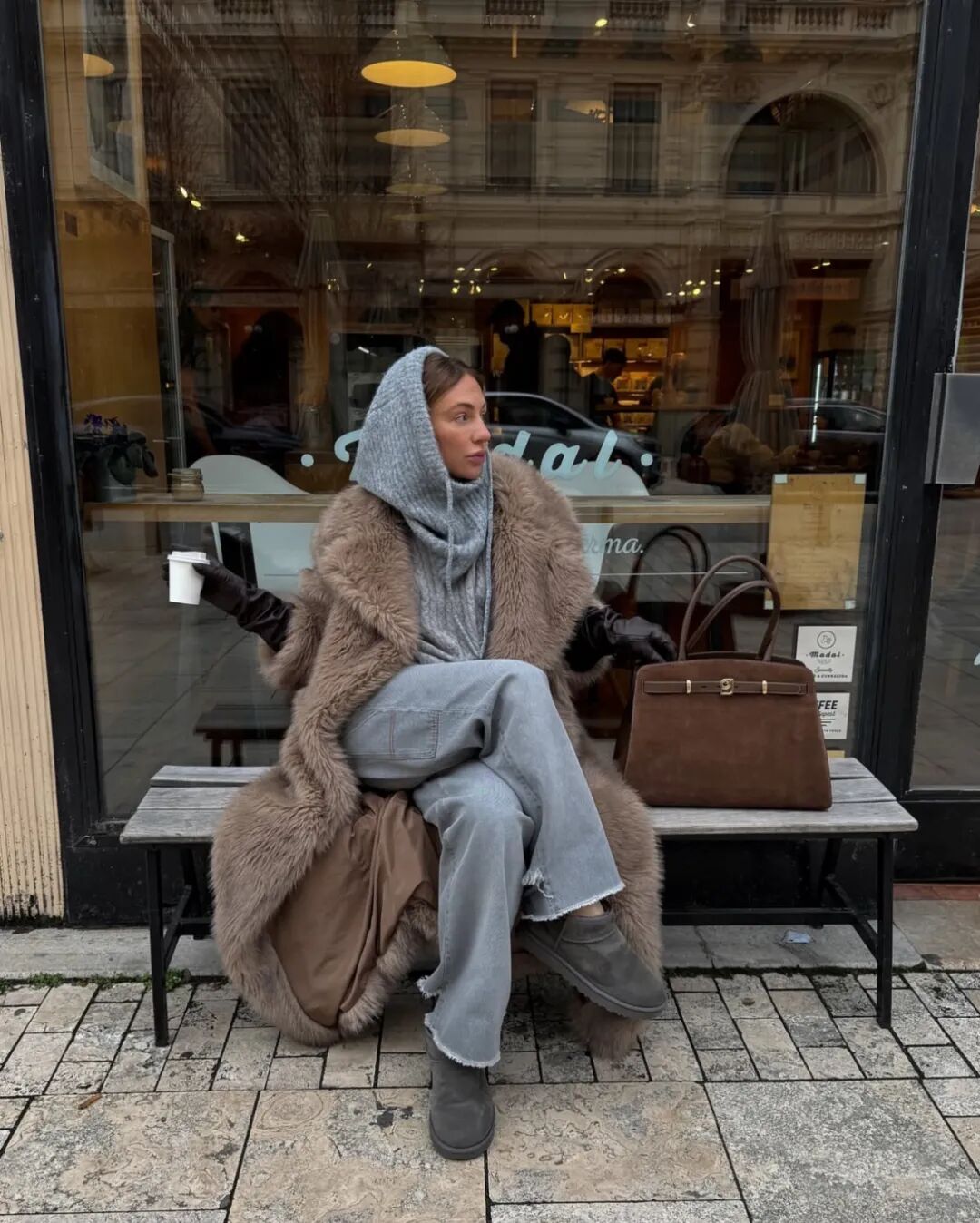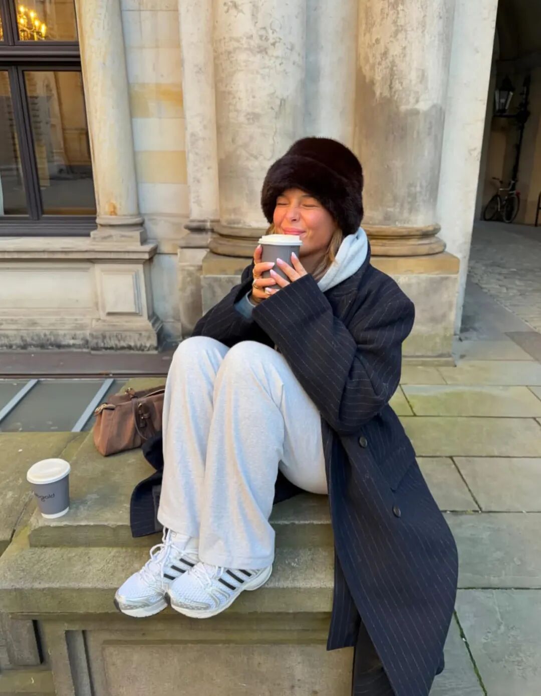 大衣里的卫衣套装将居家舒适直接穿出门。当卫衣被包裹在利落的大衣或长款羽绒服之下,便形成了绝妙的风格对撞。选择灰、燕麦或奶油色等中性色调,能轻松提升质感,搭配一双厚底运动鞋,既能适应城市漫步,也能帮助短途通勤。