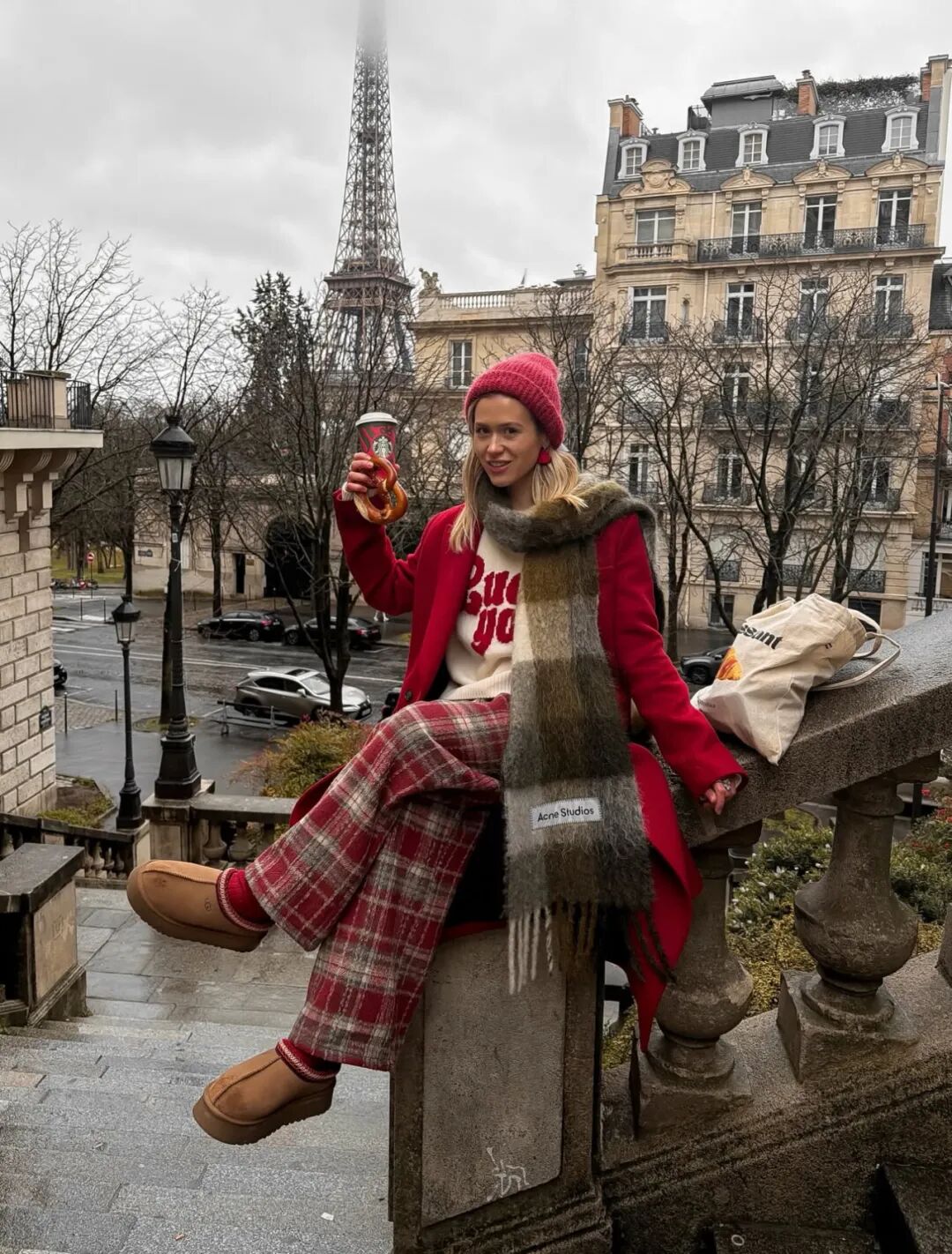 一双厚底皮质乐福鞋或复古运动鞋,保证了全天候的舒适与不费力的时髦。一顶柔软毛线帽,在御寒的同时修饰脸形,营造了文艺感的氛围。一个托特或腋下包,则兼具了能装下小物件的实用性,与成为整体造型视觉支点的设计感。