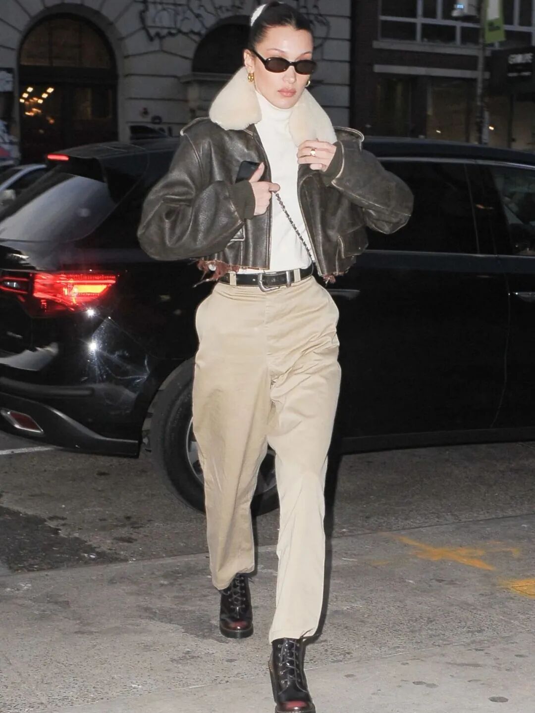 在复古风潮下,做旧皮夹克再度流行。选择带有毛领的款式,搭配宽松长裤与短靴,便能轻松打造出一种随性、耐看且颇具格调的都市着装。