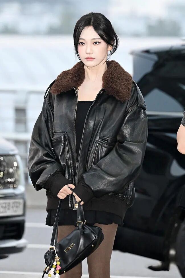 搭这种外套,秘诀就是“重点突出”——外套本身已经足够有戏,内搭和下装基础就够帅。让皮革的硬朗光泽与毛领的蓬松质感形成有趣对比,整体造型富有层次且态度十足。