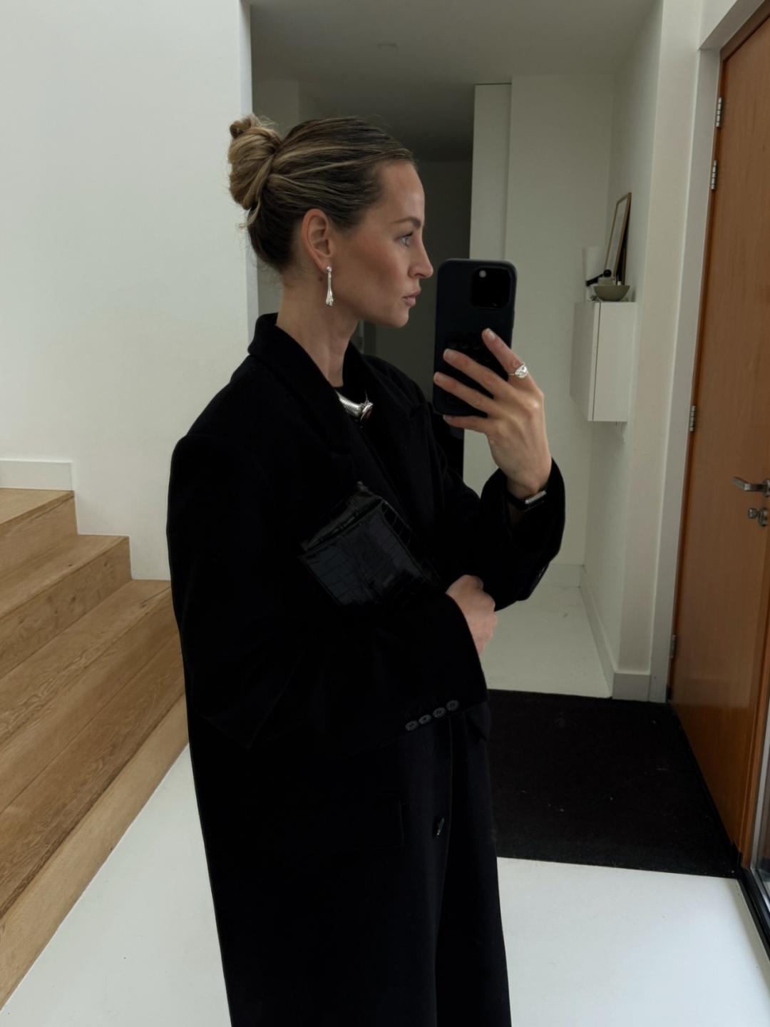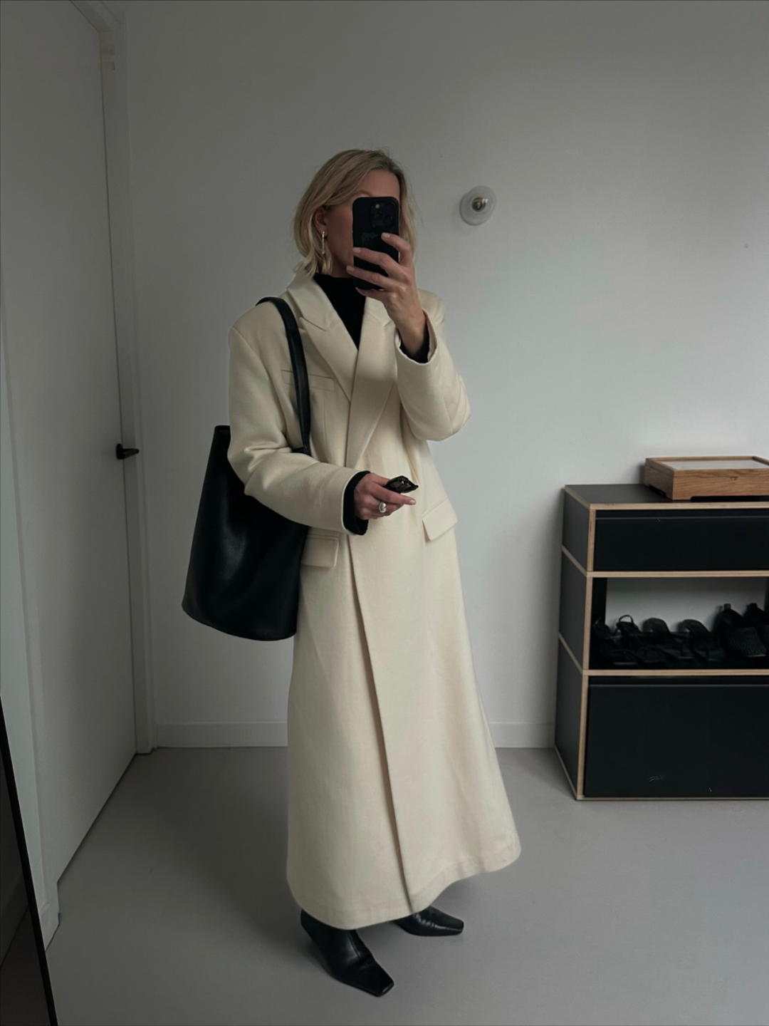 清冷感穿搭往往从轻轮廓的单品开始,它们没有夸张的结构,也不主动占据空间,只是顺着身体自然延展,比如落肩款长大衣让肩线与冬季的冷空气一起向外流淌,柔和了轮廓的锋利感。