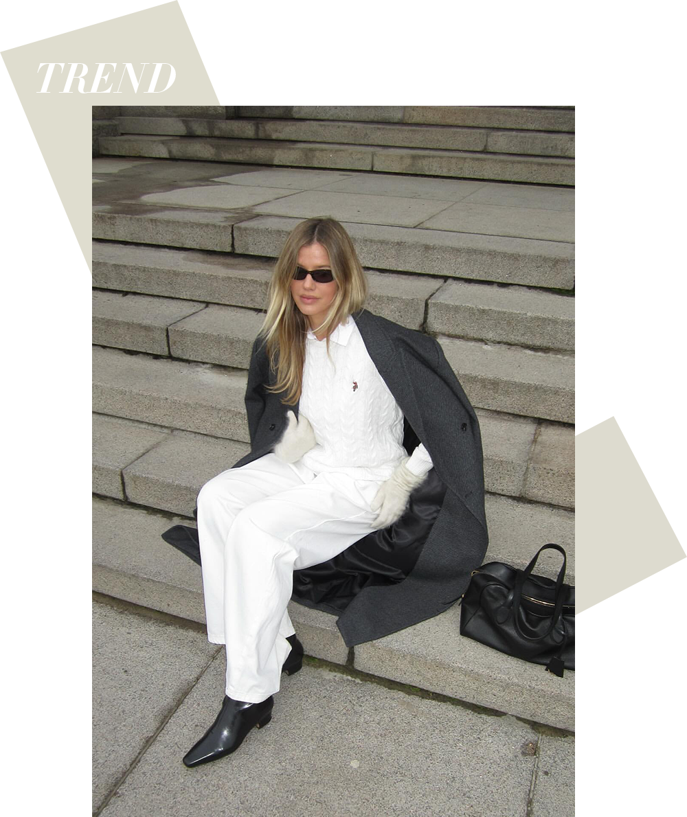 白色像踏雪时的空气、灰色像阴天的海、米色像窗台上还未凉透的奶茶,它们之间有种天然的互相成全,哪怕只是把其中一种大面积穿在身上,也能立刻获得一种视觉上的清透。