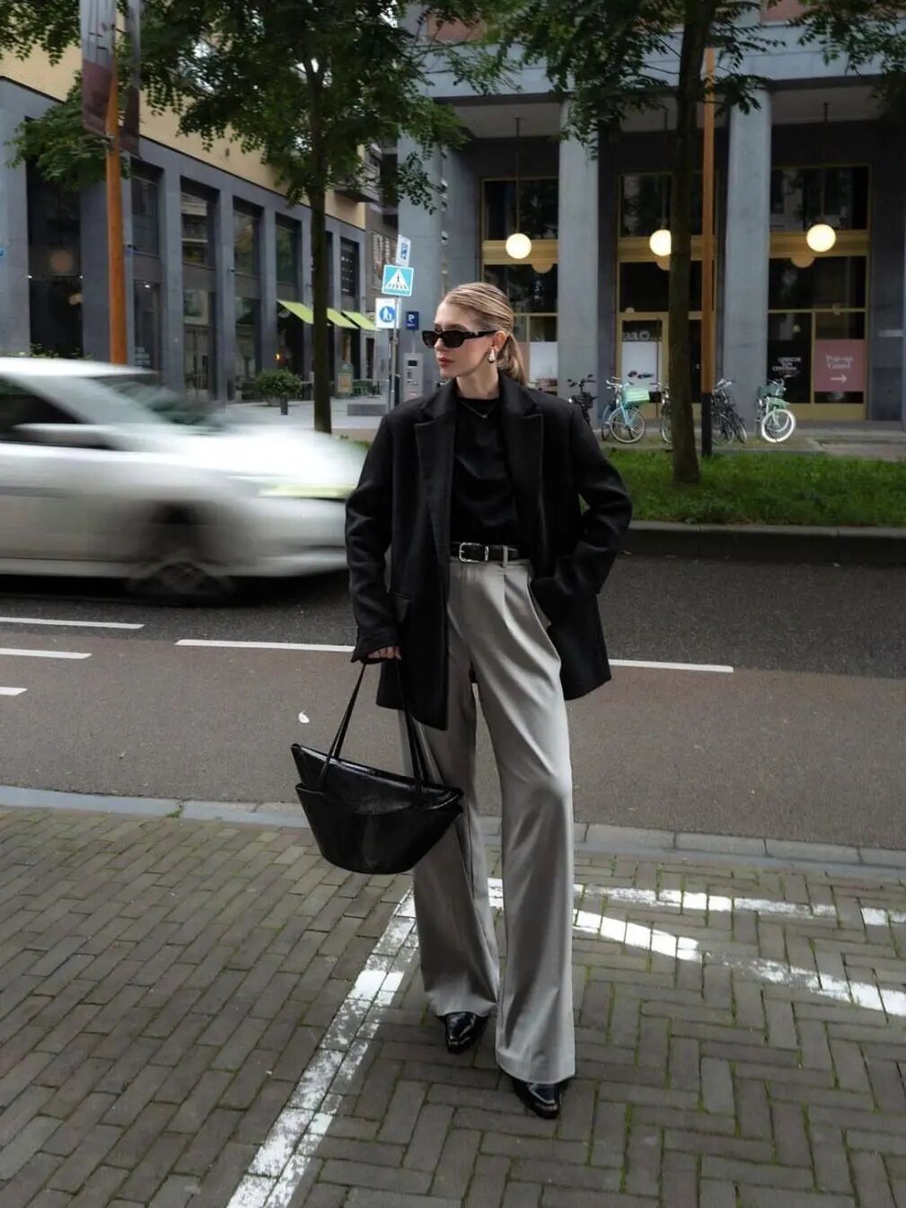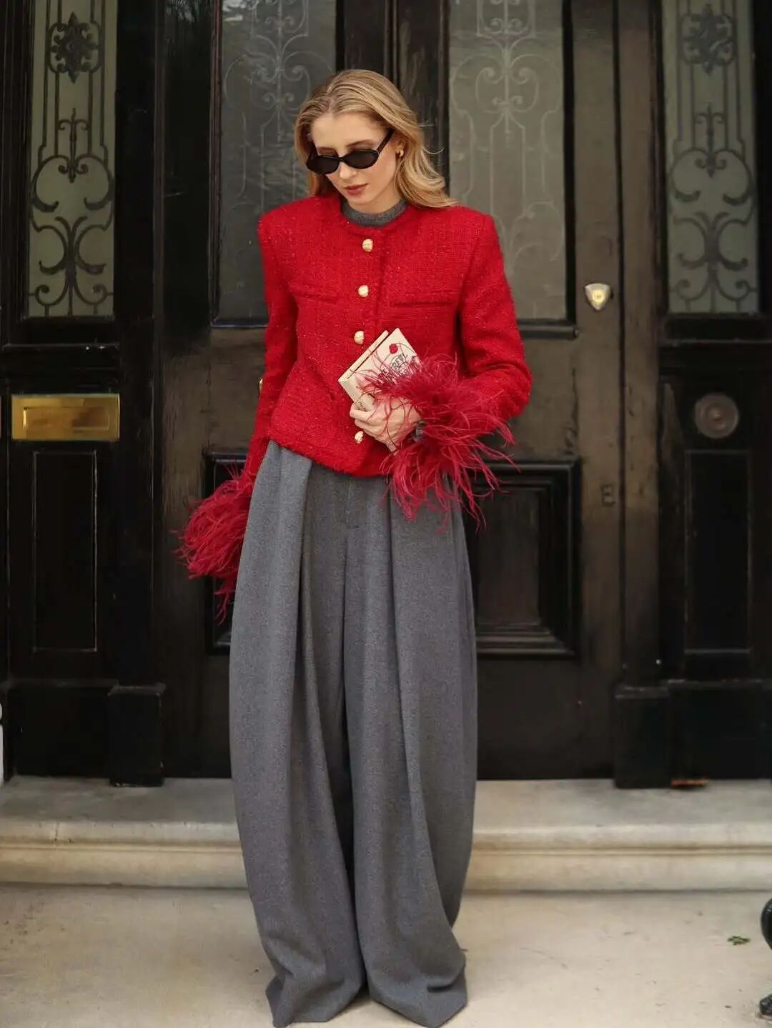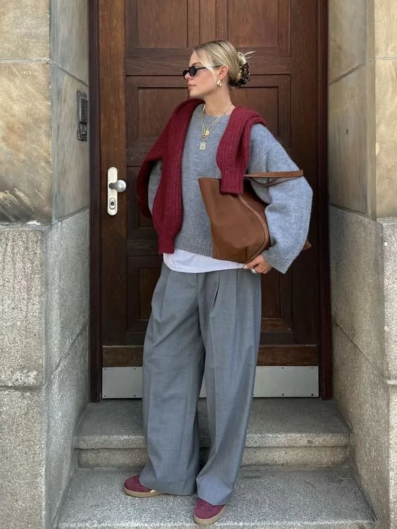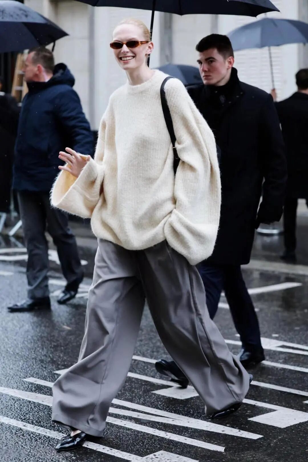 来搭配灰色阔腿裤,就能打破冬日的沉闷与萧索,