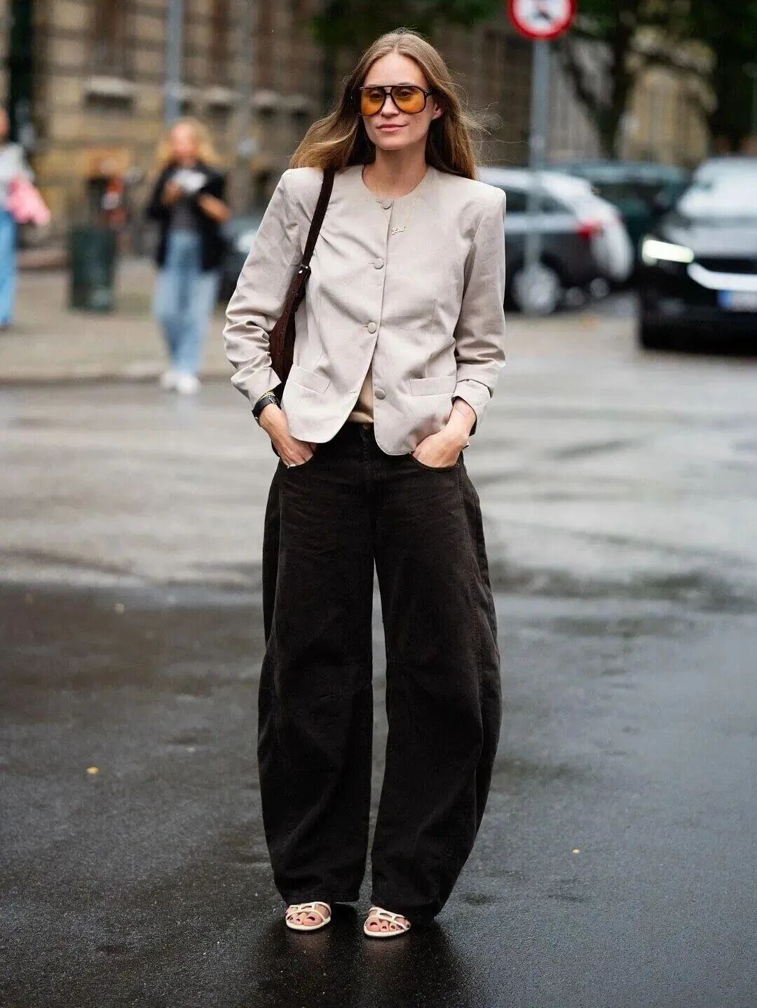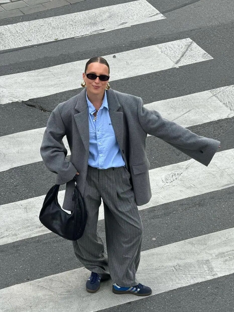 这种由面料支撑起的垂坠感正是阔腿裤的灵魂所在。