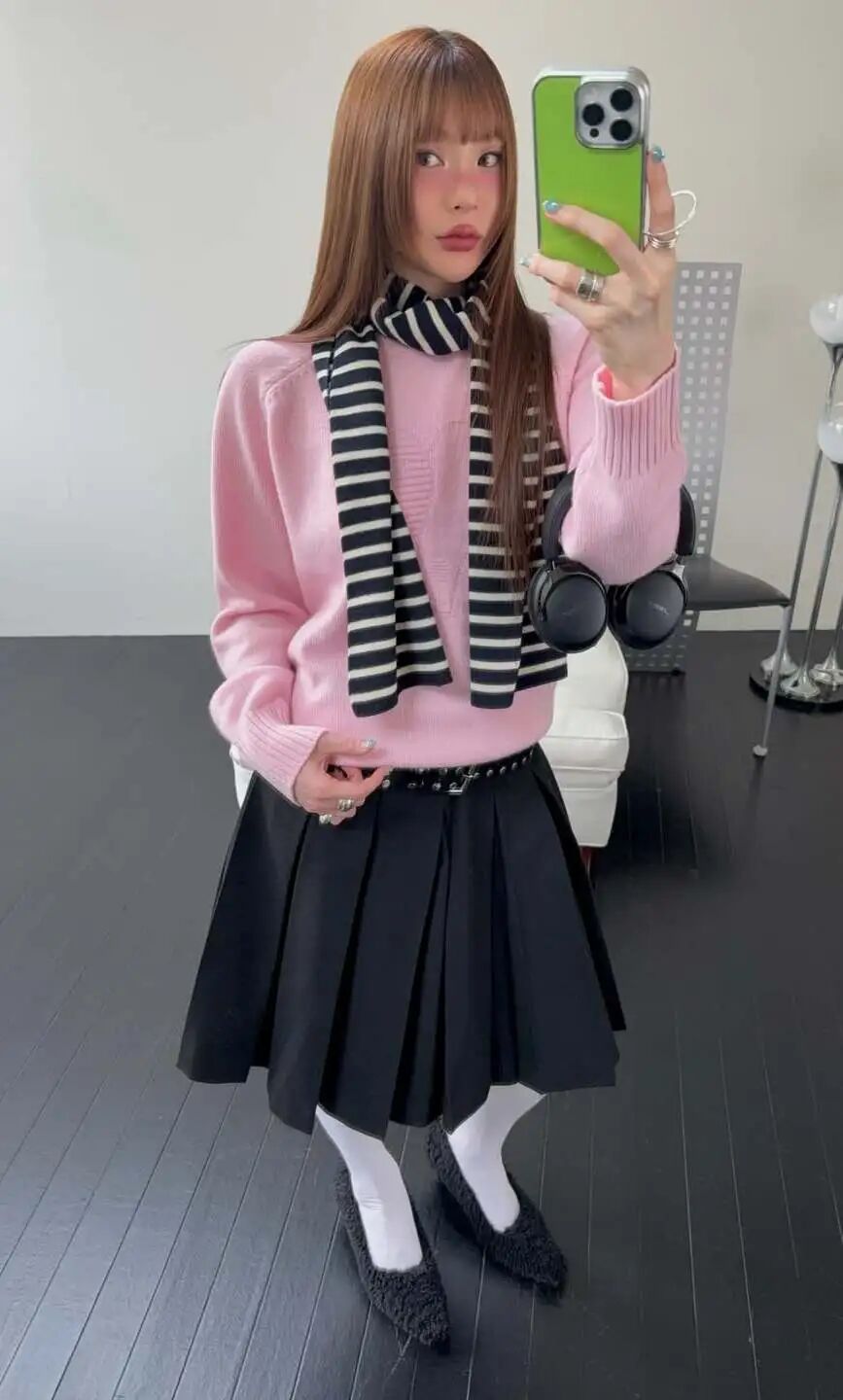 随便搭配一件毛衣,都“妹”感十足。