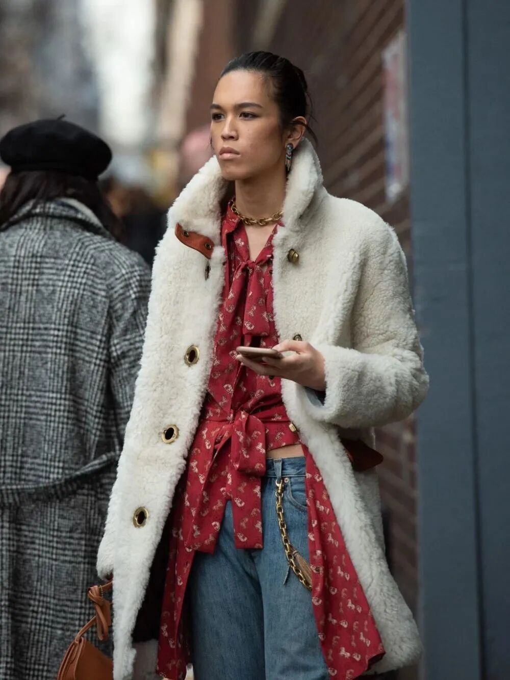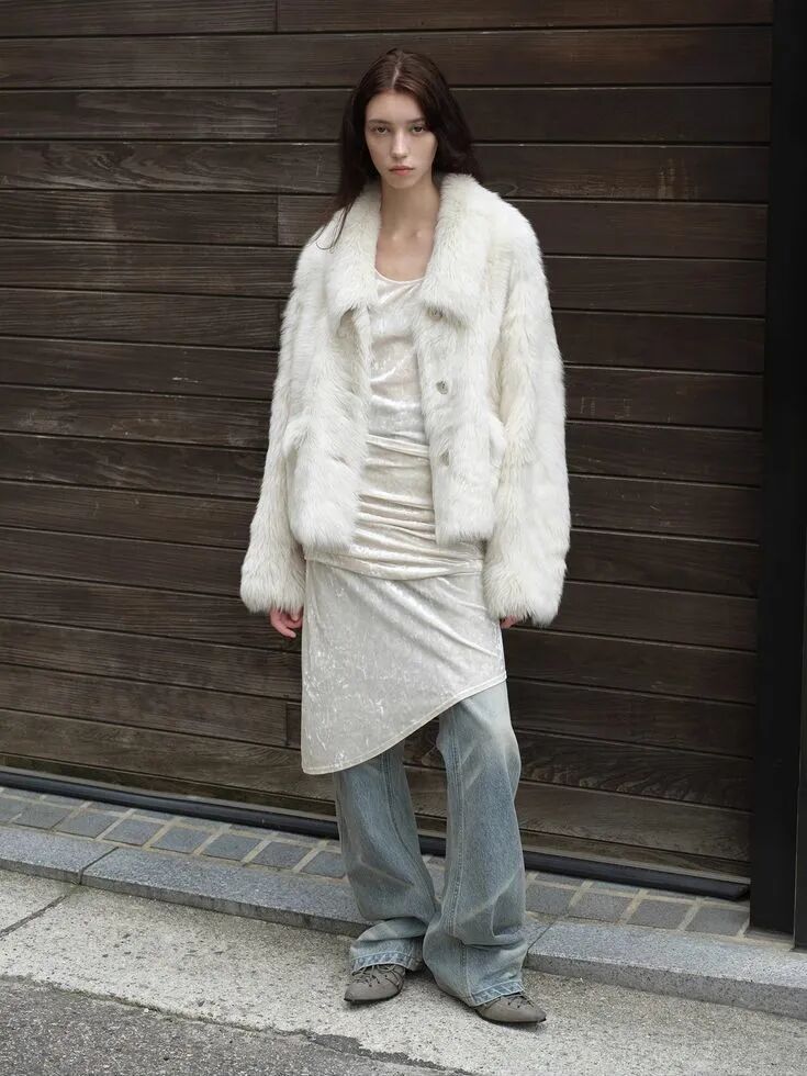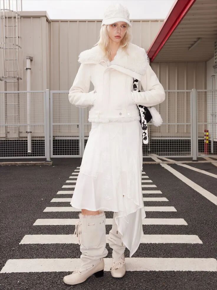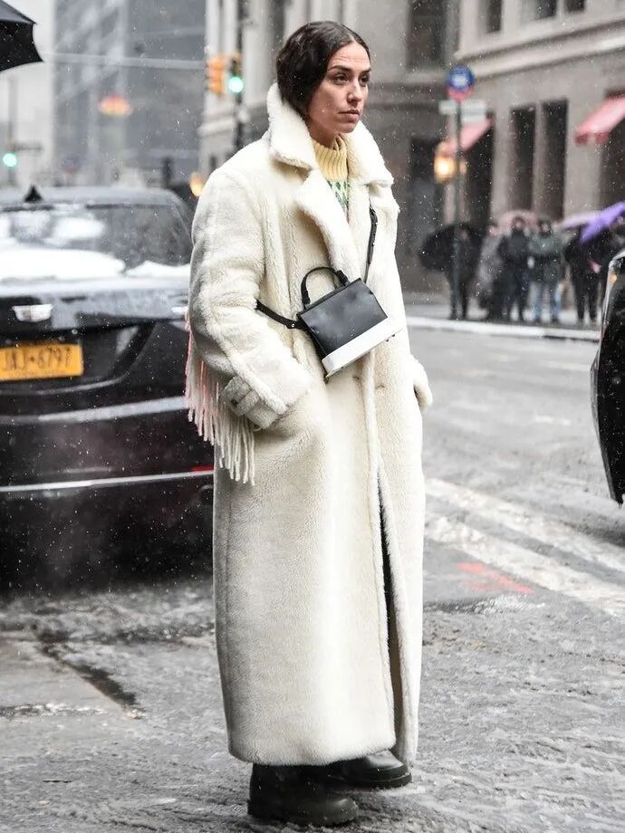带有毛边的白色外套,可以突出造型的层次与张力,冬日穿着它不仅温暖地给身体再包裹一层,毛边更以无声的轮廓语言传递出一种洒脱和风情,氛围感满分。