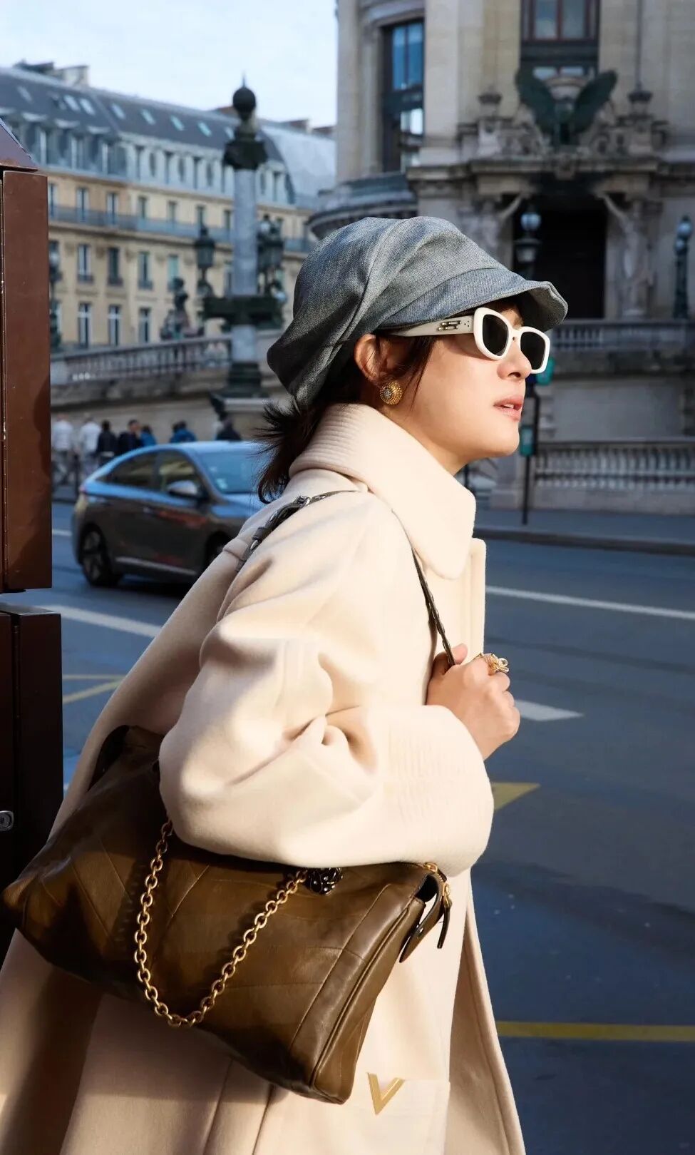 孙俪的白色造型选用了一种带有细腻奶油感的白色,这种白色比纯白更显柔和雅致,也衬得气质越发温柔优雅,再搭配一顶略带文艺气息的报童帽作为点缀,瞬间提升了整体的复古格调。