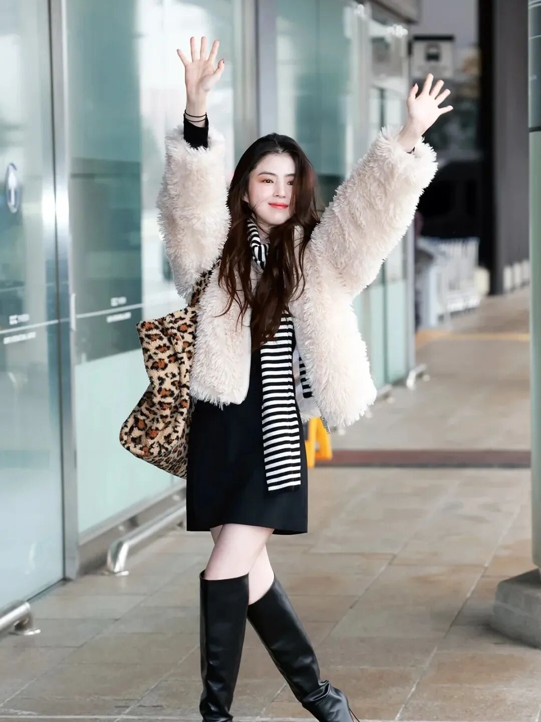 韩素希的白色穿搭则展现出不拘一格的个性魅力。毛茸茸的白色外套质感蓬松,将白色的轻盈与柔软衬托得恰到好处,内搭一条黑色半裙,形成明暗对比,再配上一双过膝长皮靴,瞬间注入一股潇洒帅气的氛围。