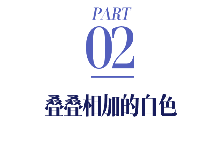如果想要避免白色的平淡,可以运用具有结构感的面料来演绎白色,通过各种材质的碰撞和立体的剪裁,让看似“寡淡”的白色充满丰富的层次。