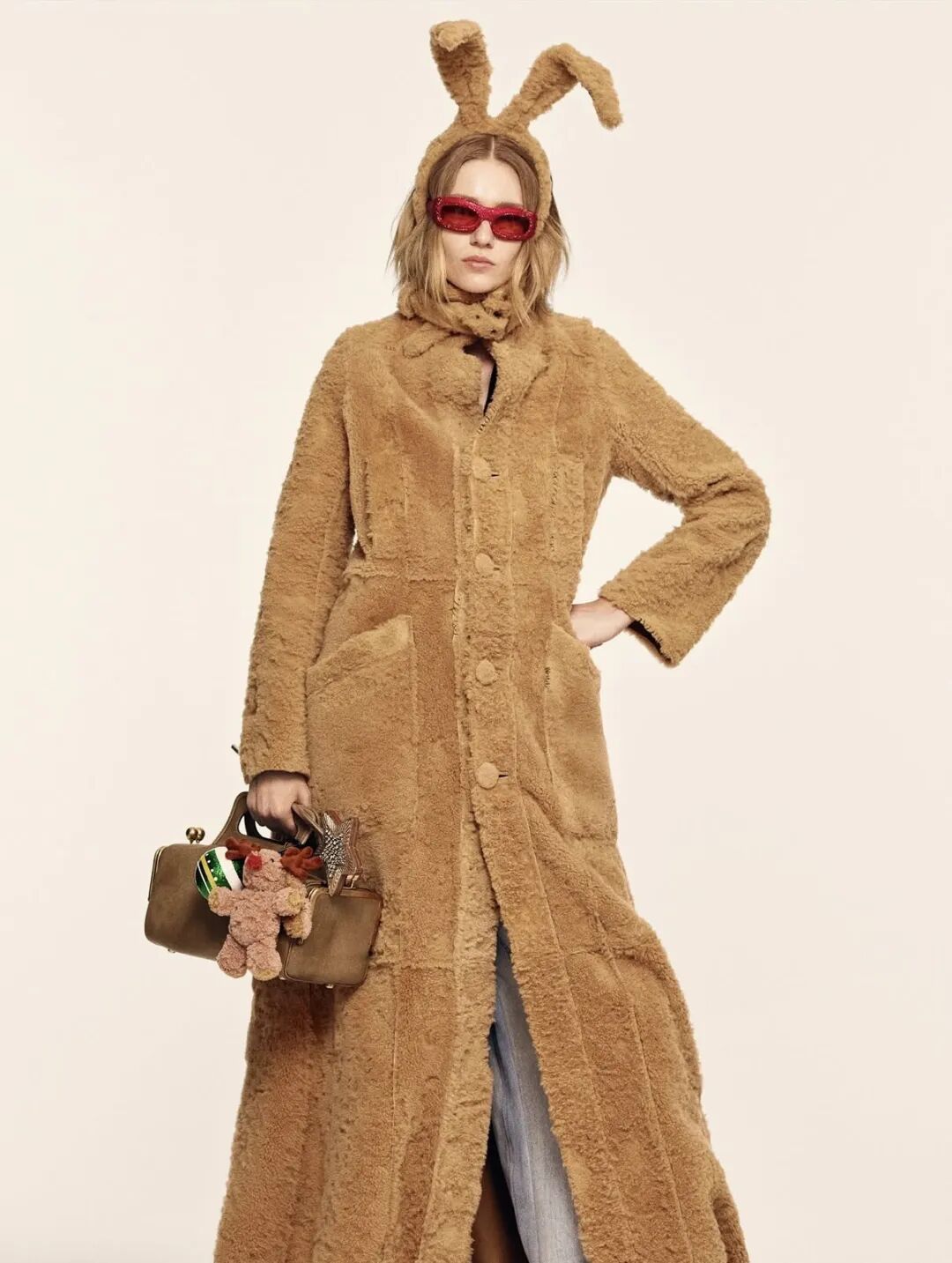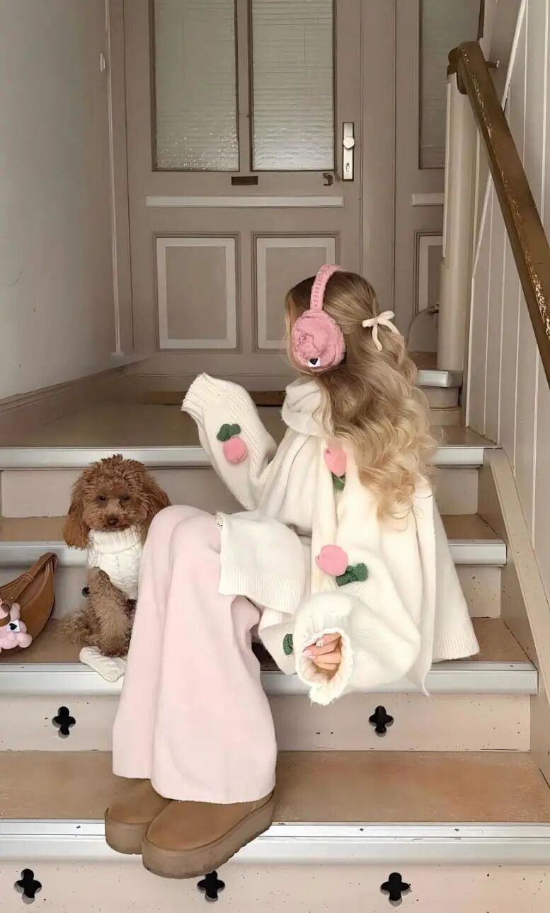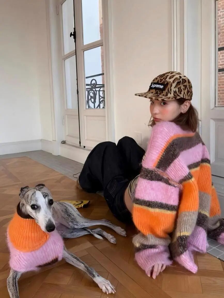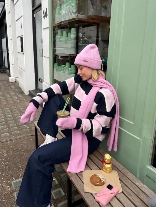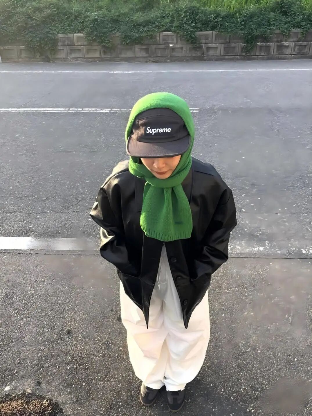 白鹿直筒外套内搭黑色针织开衫自带慵懒气场,猫耳针织帽则瞬间中和了穿搭的酷感,甜妹属性藏不住啦~
