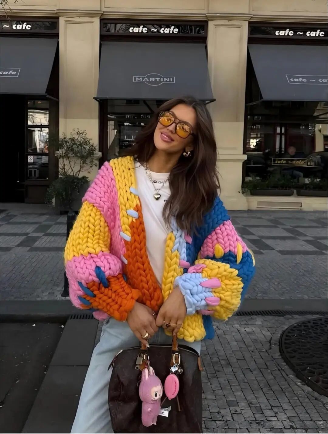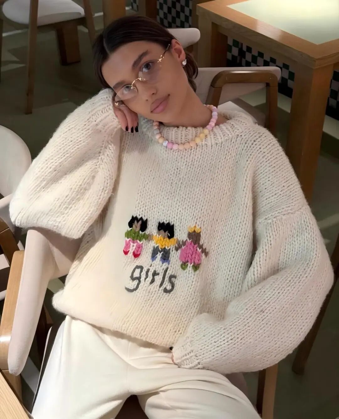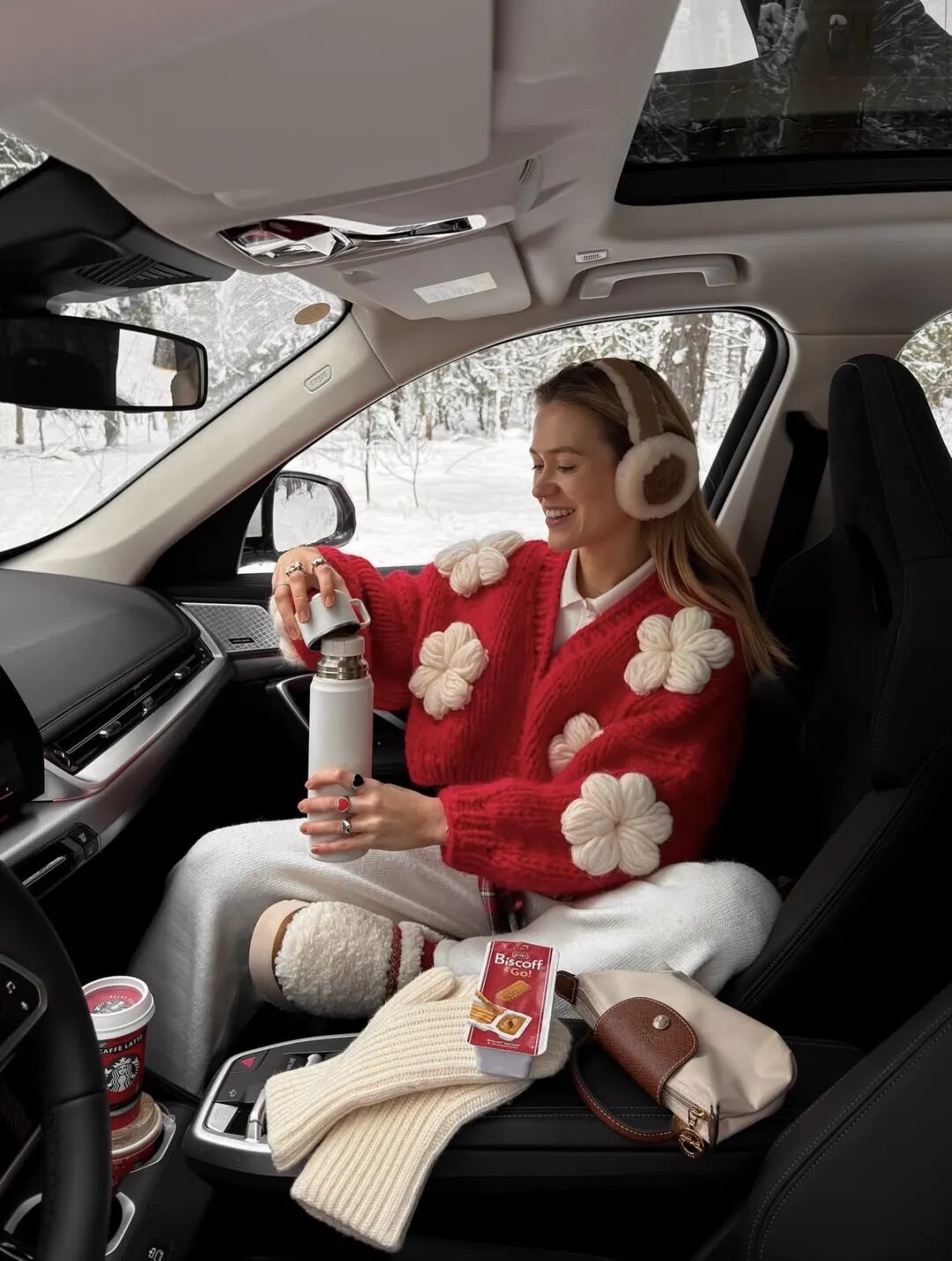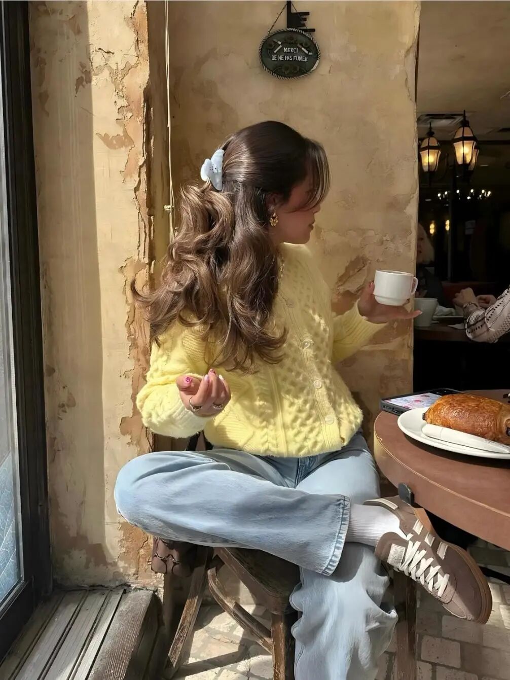 白鹿直筒外套内搭黑色针织开衫自带慵懒气场,猫耳针织帽则瞬间中和了穿搭的酷感,甜妹属性藏不住啦~