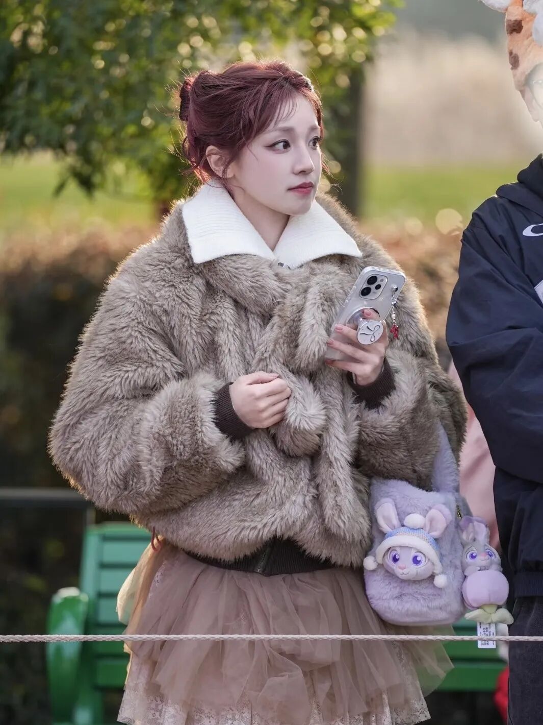 同样出现在迪士尼的另一位“在逃公主”宋雨琦,软乎乎外套搭配玩偶挂件,谁见了都要直呼一句“太可爱了”。
