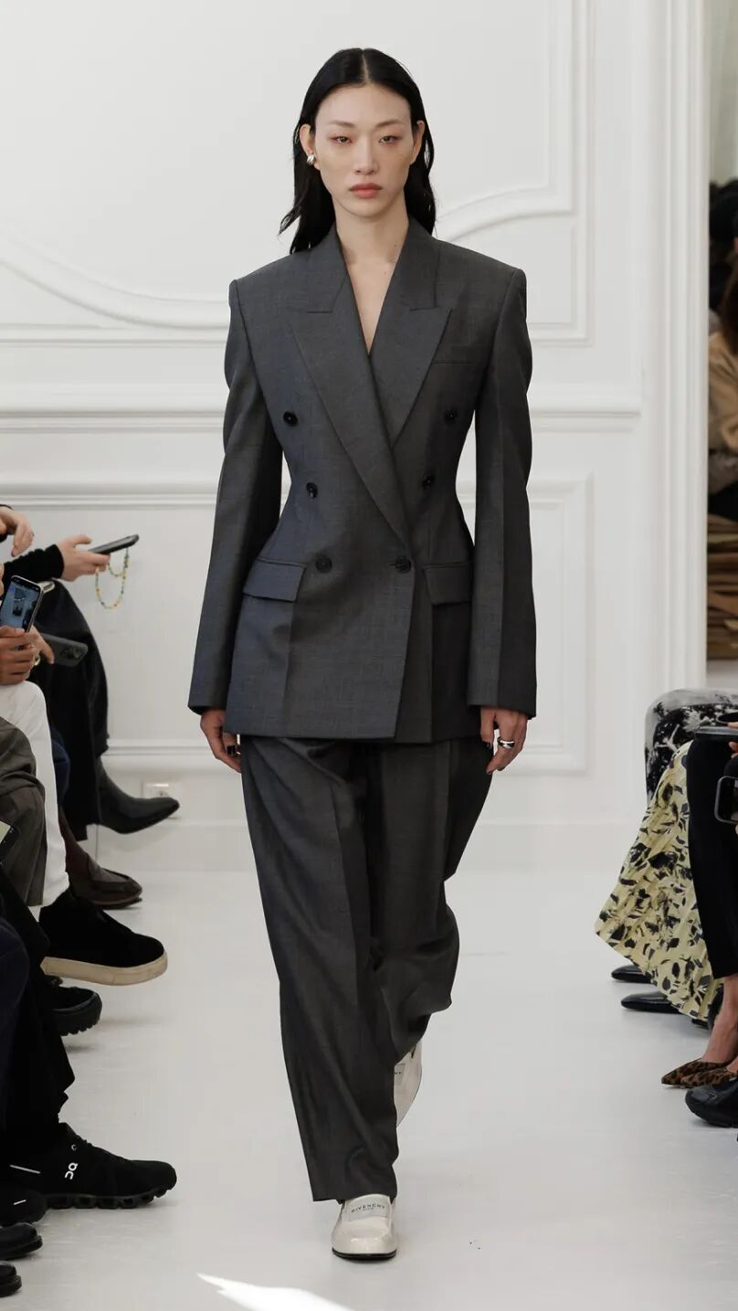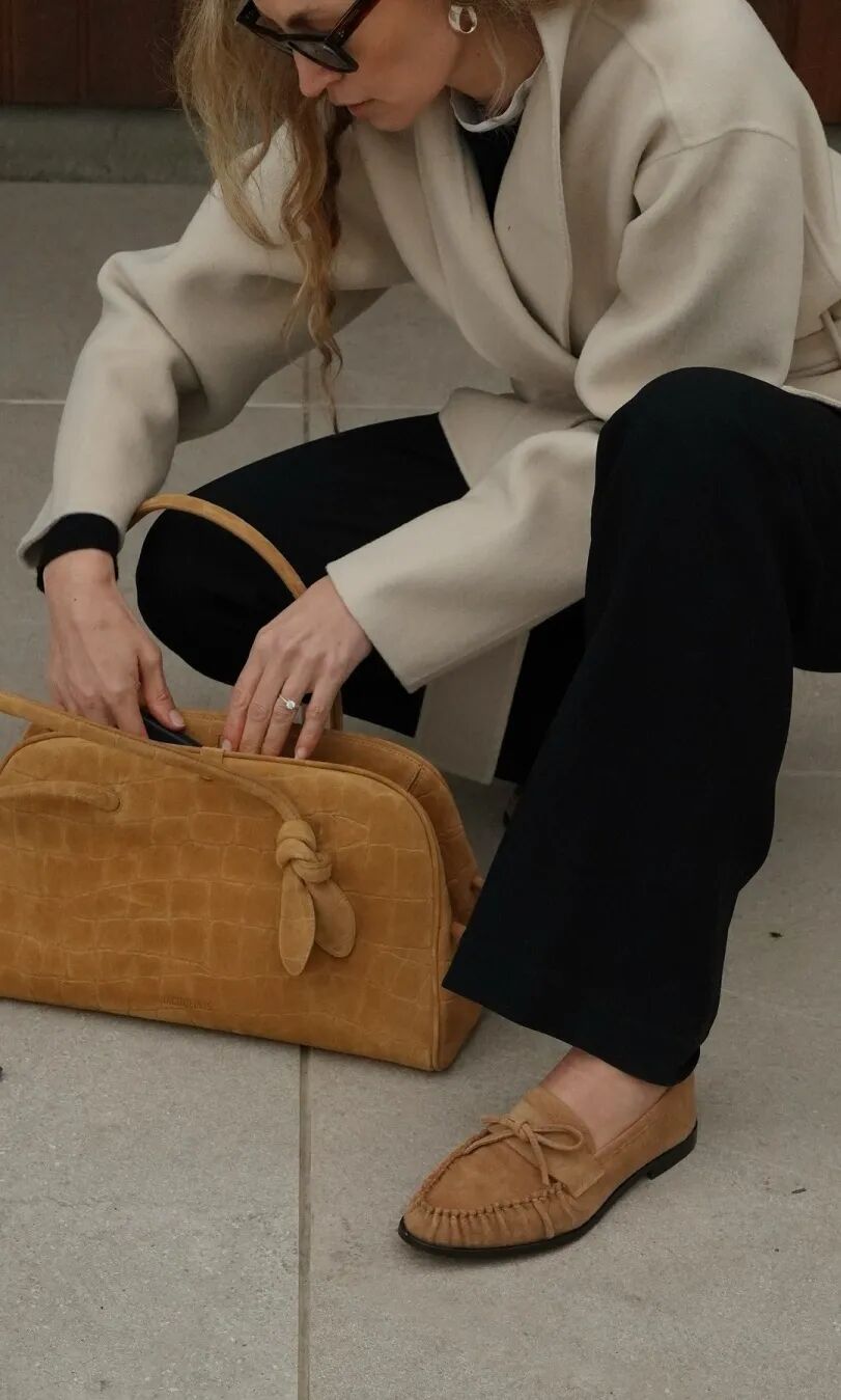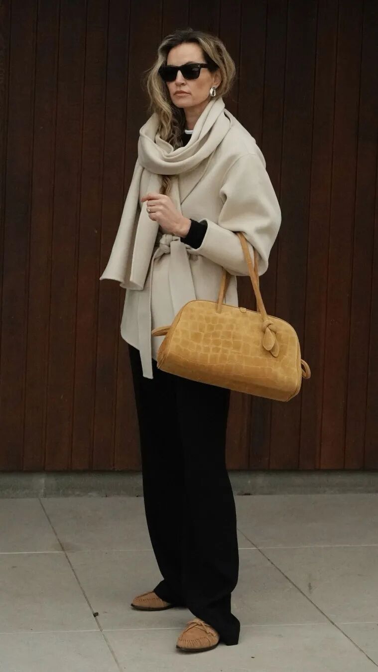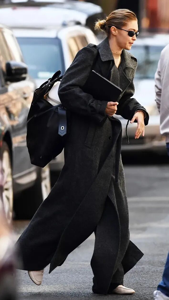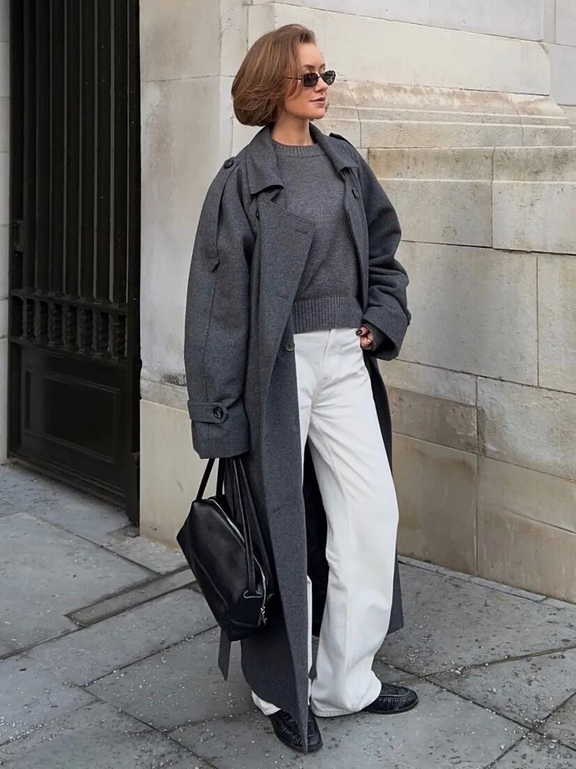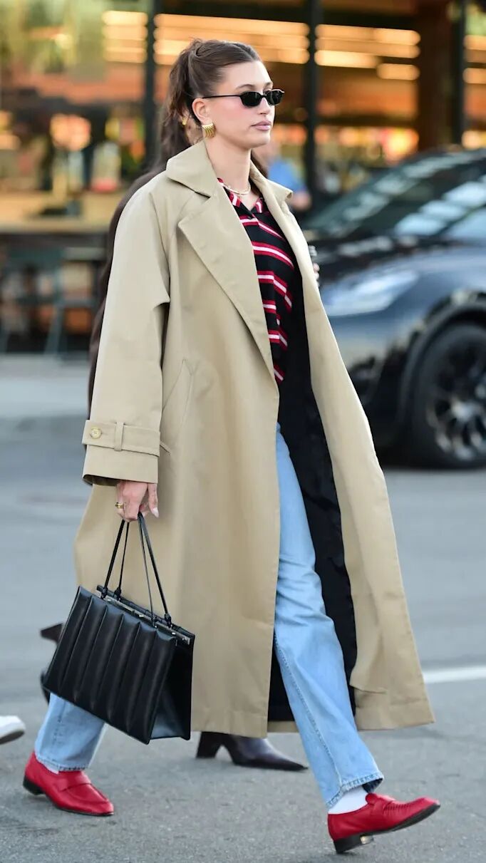 而薄底乐福鞋与风衣、套装等