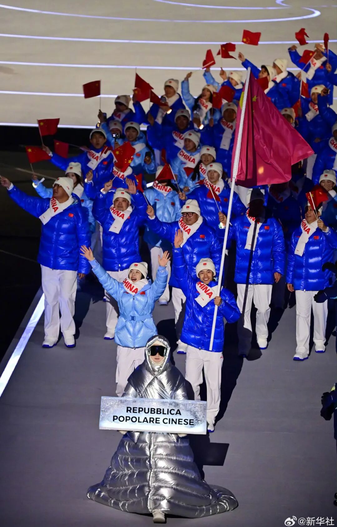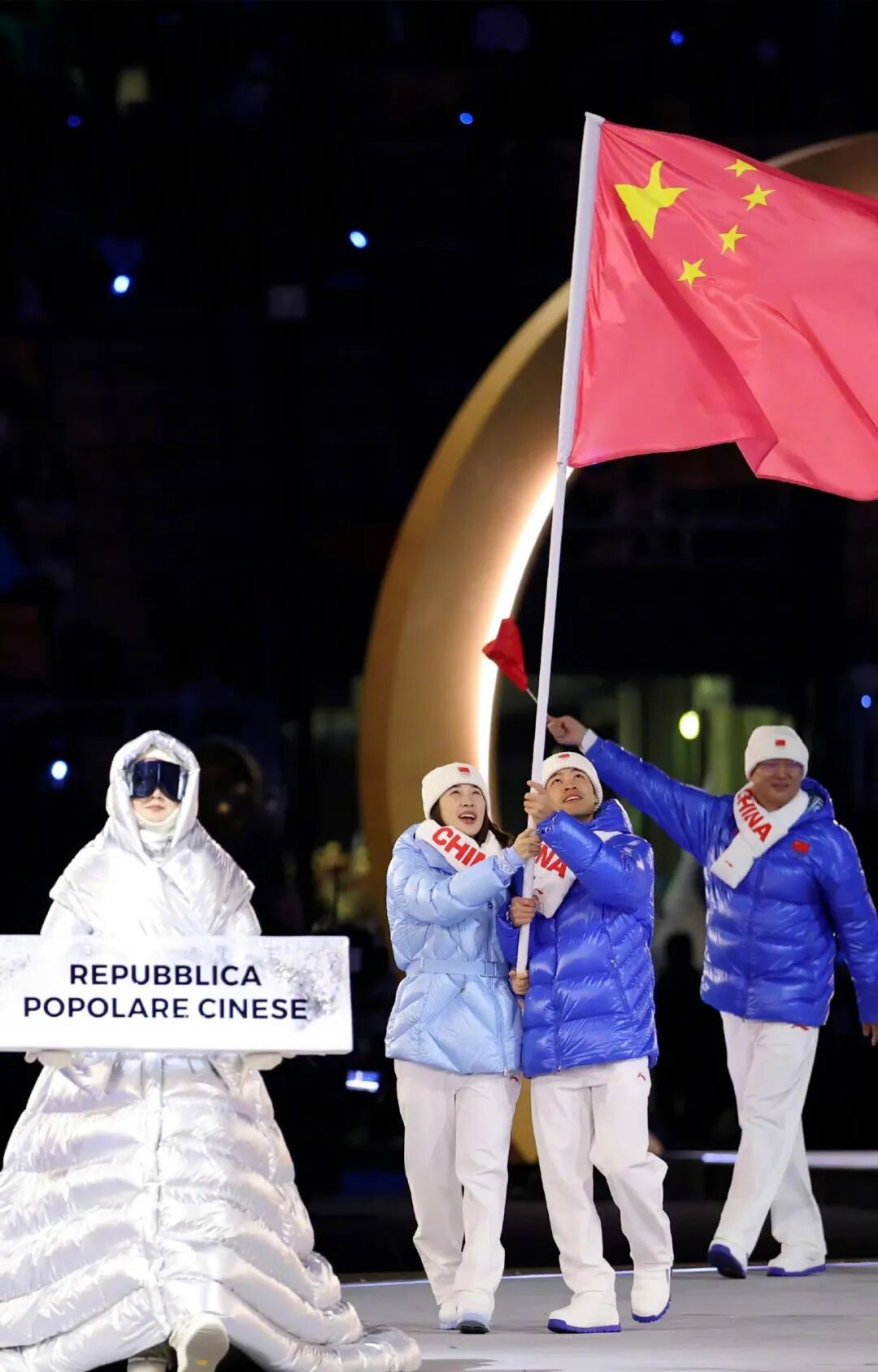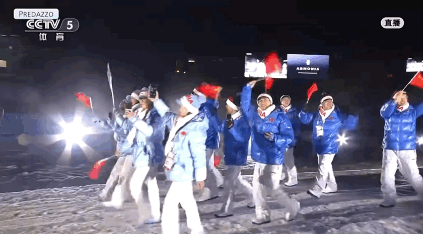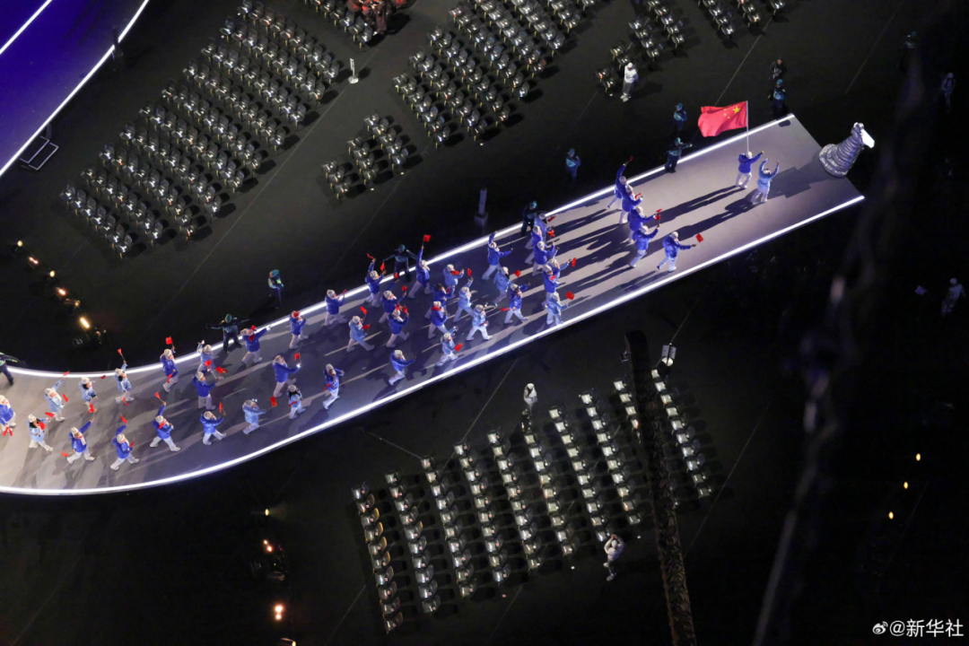 闭幕式采用红/白/蓝色块拼接羽绒服,