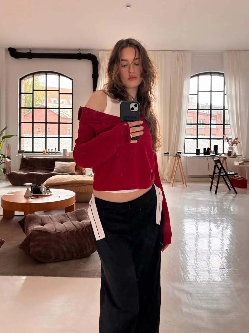 不管是外套还是下装,一抹正红上身,