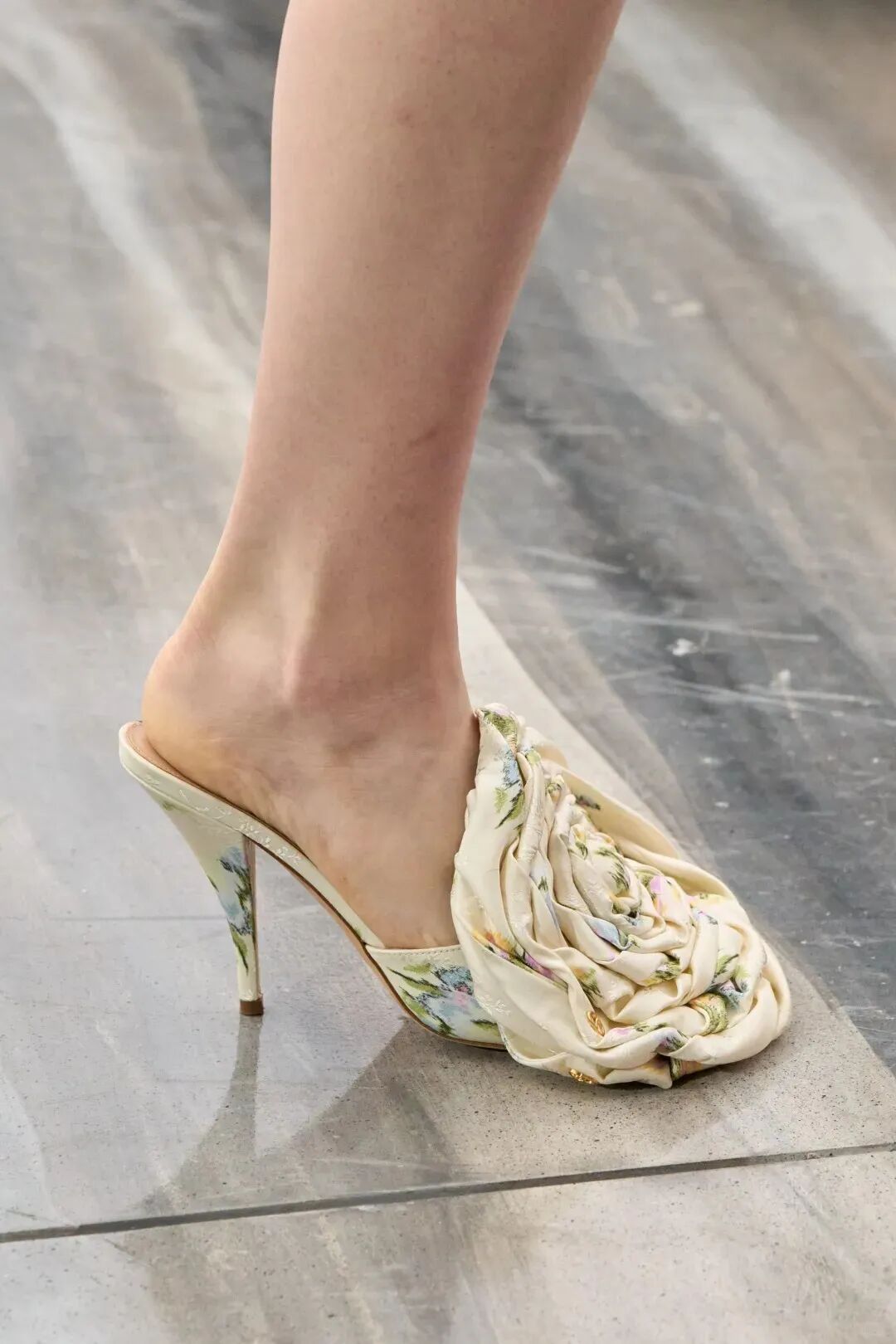 Anderson 的 Dior 女装首秀主打“翻新,不推翻”,讲传承,不抹杀任何一届掌门人的功劳,甚至有可能因此召回一批 Galliano 时期的忠心客,也终于重现品牌特有的那种“外表花枝招展脆弱又敏感但内核决绝叛逆狠得下心的 Dior 女郎”模样。玫瑰花高跟鞋,是一个可以预见的爆款。前任遗留下换个颜色又卖一季的 Dioriviera 限定系列,应该不至于就此消失。