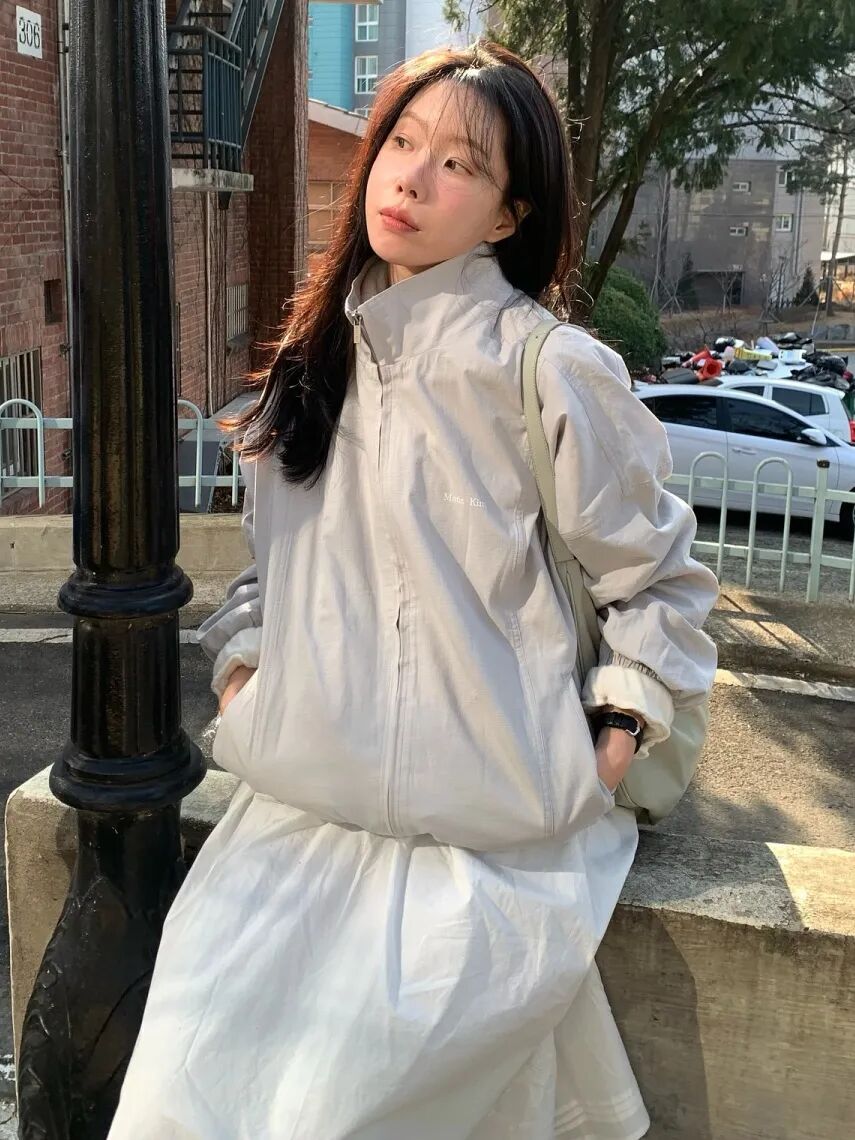 饱和度颇高的蓝粉配色运动夹克带人一秒入春,