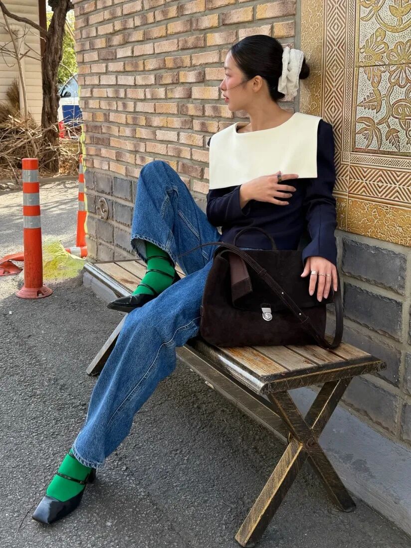 只要添置一个彩色的内搭,或者一双彩色的袜子,