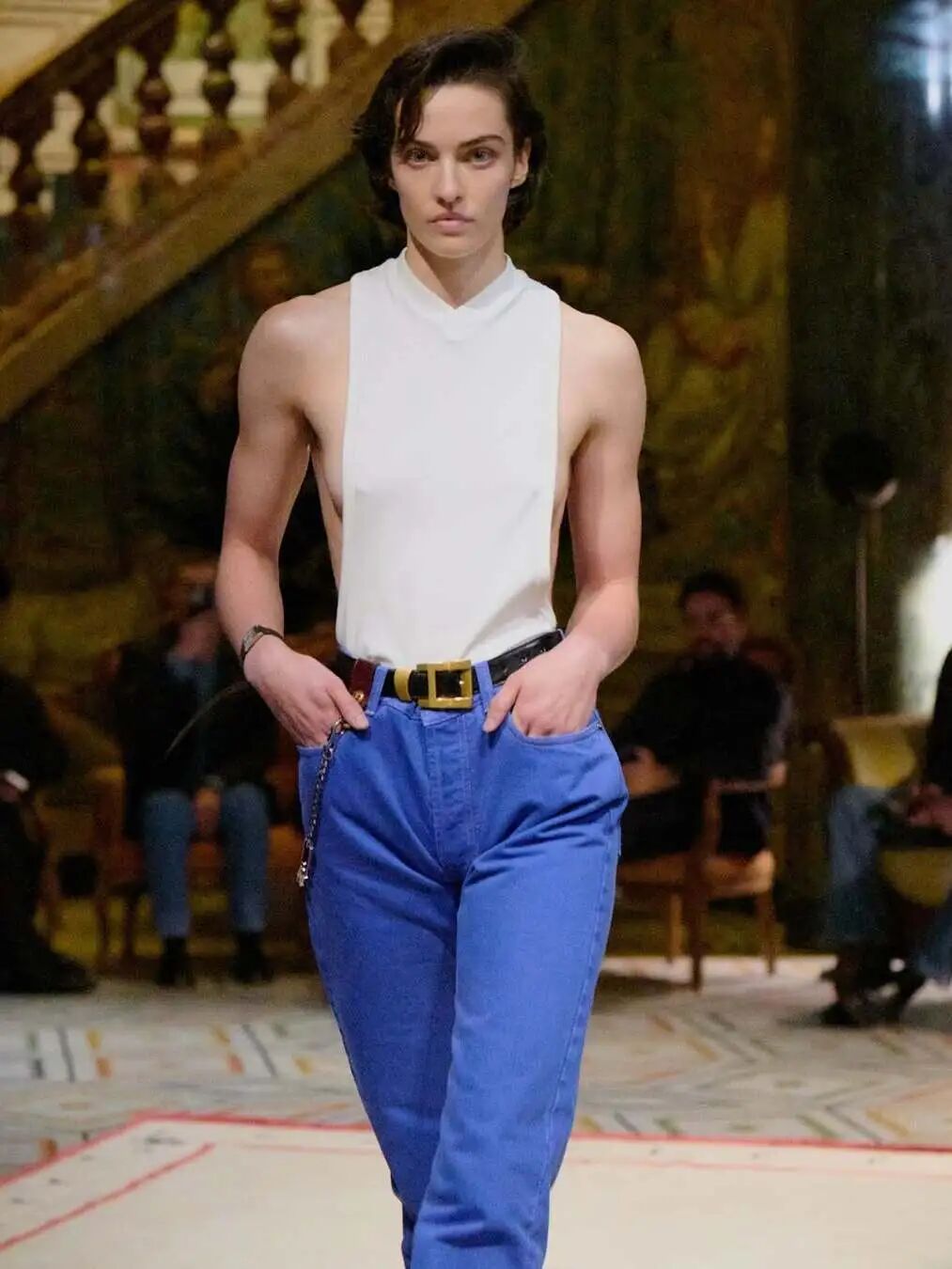 当新一代消费者在重新思考“奢侈”的定义与“鉴赏力”的意义之际,Dior秀场上大面积出现的牛仔单品意味着什么?当研究者警告称,二十多岁的年轻人——尤其是这一年龄段的男性——性生活频率低于前几代人,而伴侣亲密关系的缺乏又与焦虑和抑郁的增加密切相关时,我们又该如何看待Dario Vitale在Versace推出的那些刻意上提裤腰、凸显裆部存在感的裤装?Vitale在首秀两个月后便离开Versace,这几乎称得上是一项纪录。人们几乎没有时间消化他的系列。然而,他成功吸引了我们的注意,让人愿意靠近,而非转身离去。