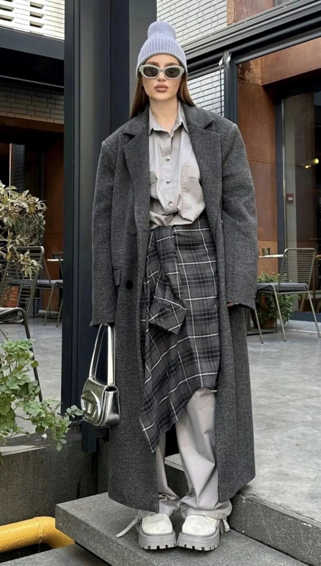 浅灰风衣慵懒随性,烟灰针织温柔慵懒,