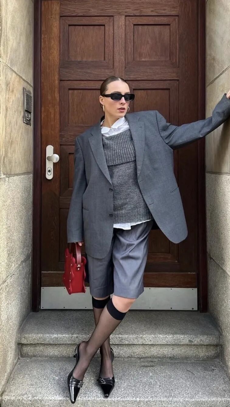 雾灰的针织、炭灰的西装、烟灰的外套,